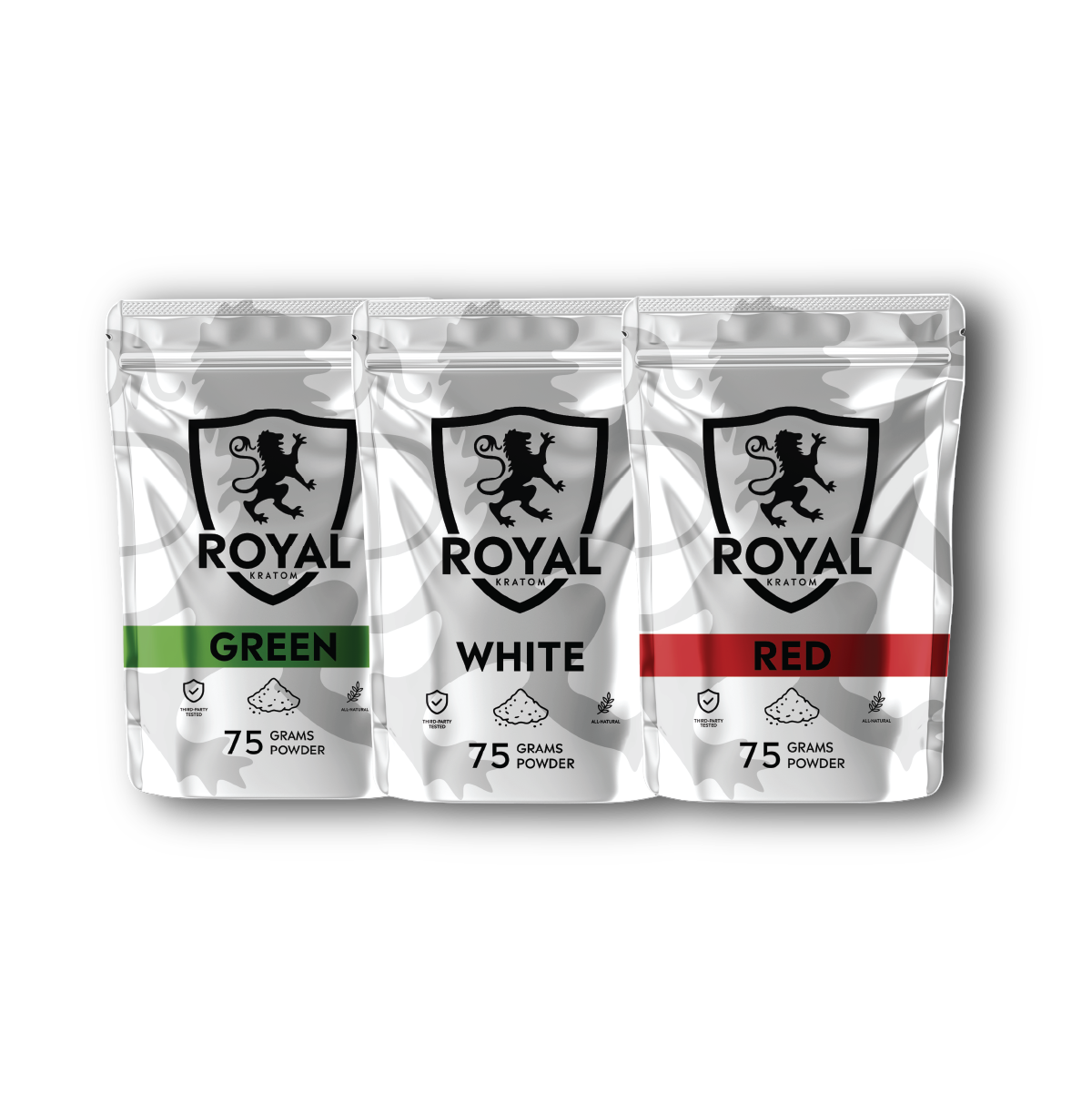 New to kratom or Royal Kratom? We've got you covered with our Kratom Powder Beginner Bundle. Featuring our best selling Green Vein strain along with customer favorites, Red and White veins, this pack is sure to not disappoint. This beginner bundle for trying kratom is perfect as powder, perfect for trying with kratom potentiators.